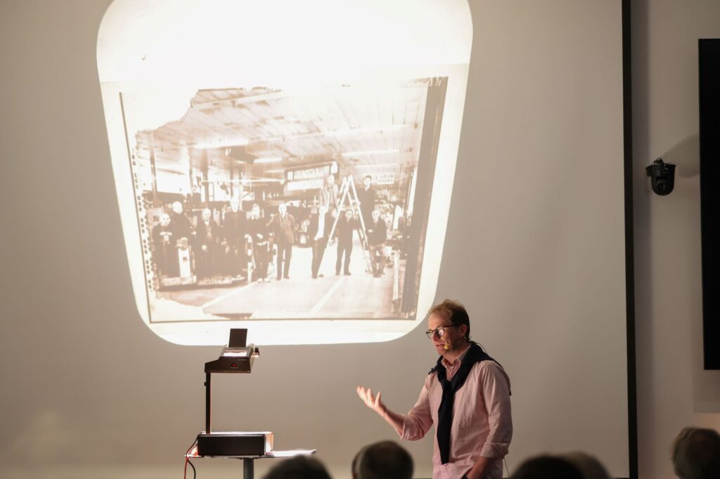 Florian Kaps, Polaroid, bei seinem Vortrag. Foto: WKS/ Franz Neumayr